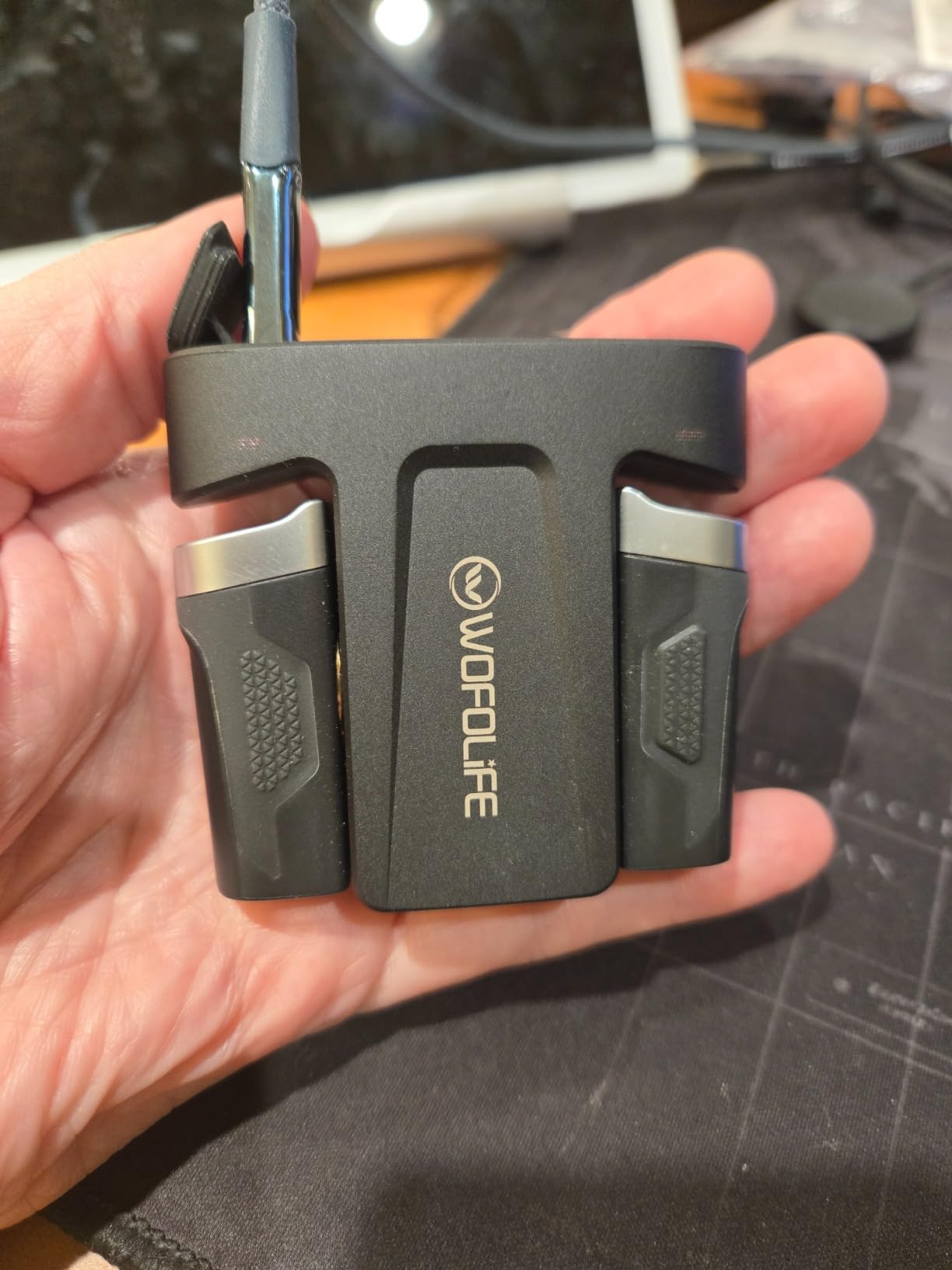 - Innovatively Patented Lights for Glasses: The WOFOLIFE WD12 glasses light is specially designed for safety goggles, inspired by the shape of space rockets. The two lights are mounted on either side of the charging dock and can be used independently as flashlights. When they run out of power, simply return them to the dock for recharging. With a sci-fi and stylish design, the lights are compact, measuring 1.8x0.9x0.7 inches, about the size of a thumb, and weighing only 0.6 oz.